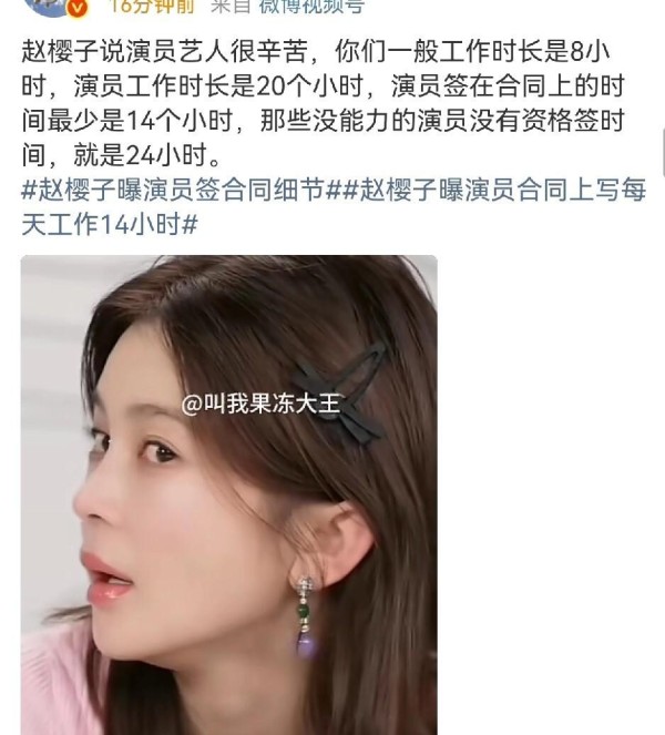 赵樱子说演员一天干20个小时,合同里白纸黑字写最少14小时,没资格签这种合同的还得24小时待命,可她这番“卖惨”为啥网友不买账?
