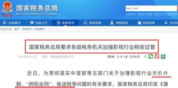 相关部门也对此等问题发布治理要求,7月份国家税务总局印发《通知》,要求各级税务机关深入推进税收领域“放管服”改革,进一步加强影视行业税收征管,规范税收秩序,积极营造支持影视行业健康发展的良好税收环境。