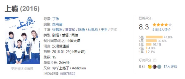 《上瘾》在严苛的豆瓣,被5.1万余人评出8.3分。