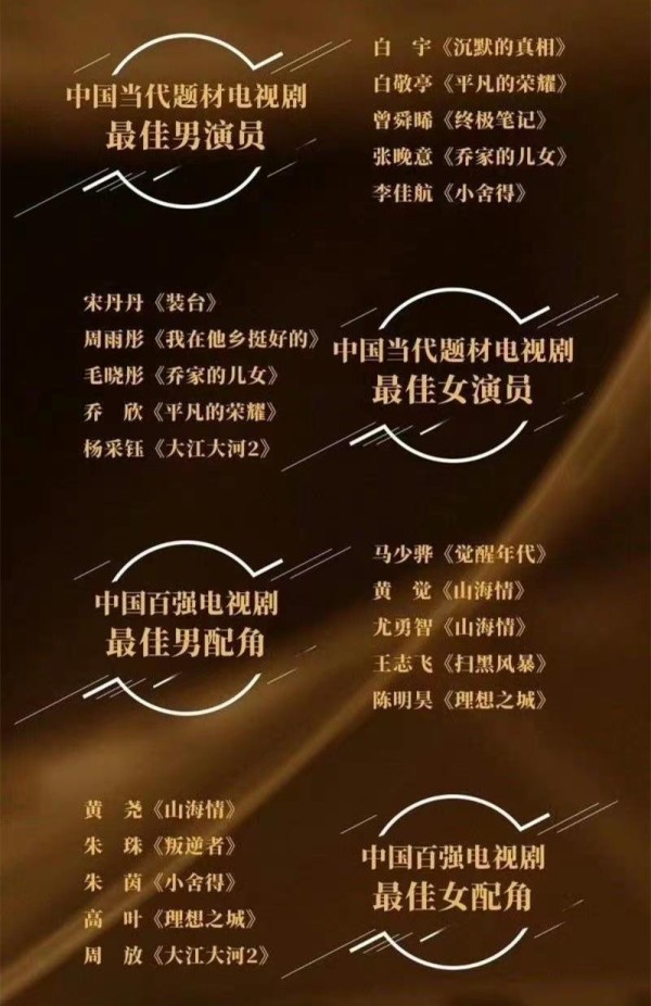 任嘉伦和周一围还同时入围了“中国古装题材电视剧最佳男演员”,白宇还同时入围了“中国当代题材电视剧最佳男演员”。《你是我的荣耀》的杨洋和迪丽热巴,《斗罗大陆》的肖战,《暴风眼》的杨幂,《隐秘而伟大》的李易峰都遗憾落选。