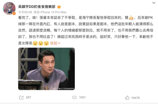 3月10日凌晨,吴镇宇本人发文回应。“有人说是剧本,说实话如果是剧本,他们这批年轻人能演得那么自然,语速那么流畅,每个人的情绪都那么到位,就不用来了,也不用我们费心去再培训了,我也不用吐血了!”值得一提的是,此前,吴镇宇也在节目中表示,“对比上一季,这一季我们要付出更多吧”。