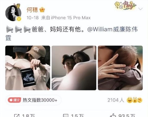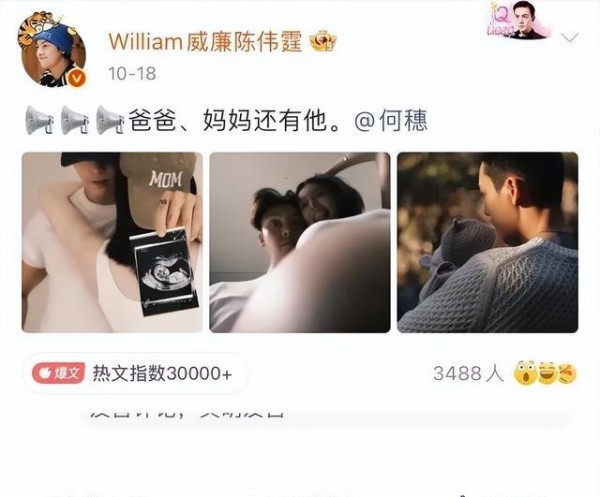 10月18日,陈伟霆和何穗在微博同步发文“爸爸、妈妈还有他”,配上B超照片和新生儿合照,瞬间引爆网络。这种打破常规的官宣方式,完全摒弃了传统明星恋情公开的步骤,直接将最终结果呈现在公众面前。有娱乐评论员分析指出,这种“去过程化”的公开方式,既体现了艺人保护隐私的强烈意愿,也规避了恋情曝光后可能带来的持续舆论压力。
