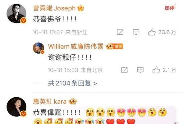 何穗为生子暂别维密秀,陈伟霆官宣喜讯