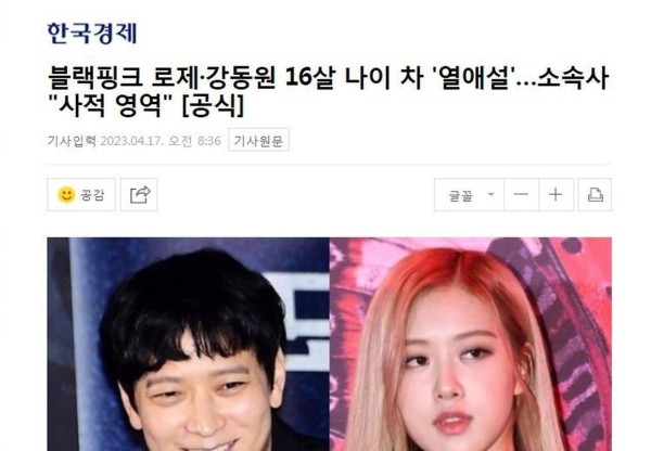 朴彩英与姜栋元的绯闻可以追溯到2023年。当时,有传闻称两人正在热恋中,尽管YG娱乐以”艺人的私生活很难确认”作为回应,但网友们的”侦探工作”并未停止。