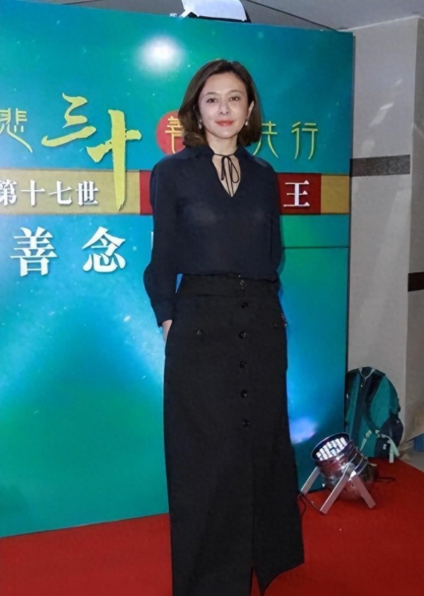 关之琳这件立领外套,刚好把最容易暴露年龄的部分挡住,只露一个下巴和脸,画个干净的妆,整个人立刻精神、干练。