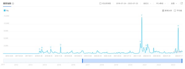 因此从百度指数看,BLG战队有两个搜索峰值,分别是2021年12月和2023年5月。前者正是BLG官宣签约传奇选手UZI。此外,Crisp、Breathe等人气职业选手的加盟,也给BLG贡献了不少谈资。