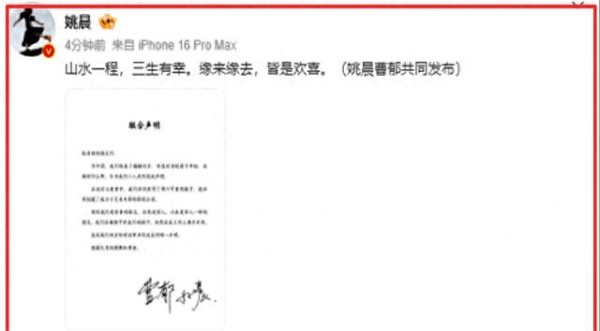 姚晨曹郁官宣离婚:不撕不闹,才是成年人最狠的清醒