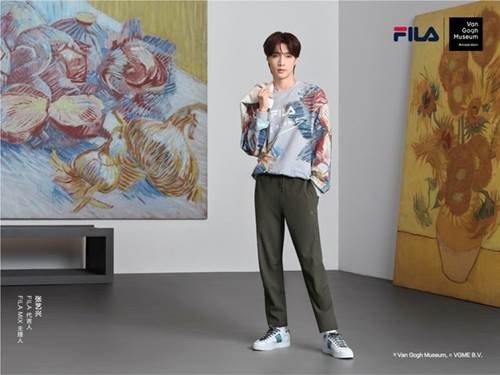 FILA代言人、FILAMIX主理人张艺兴身穿FILAXVanGoghMuseum联名系列