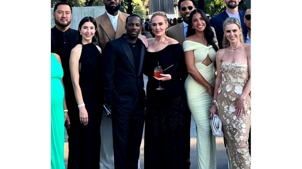 阿黛尔隐退快一年,突然出现在一群NBA球星的私人聚会里,社交网络上各种照片刷了屏。阿黛尔和老公里奇保罗一起进场,一身低调的黑色裙子,没有浮夸的设计,一头金发随意披着,显得特别放松,精气神完全不输台上开演唱会的那些年。她瘦了很多,原来脸上的线条清晰了不少,侧脸有种锋利感,和当年那种温婉圆润全然不是一个风格。聚会现场没有灯光舞台,只有简单的沙发、餐桌,詹姆斯、乐福和格林都在,几个高个子篮球巨星围一桌,笑声很大,每个人表情都像刚打完一场赢得很漂亮的比赛,阿黛尔在人群里反倒变得安静不少,跟丈夫靠得很近不太多话,但眼神老跟着里奇保罗。