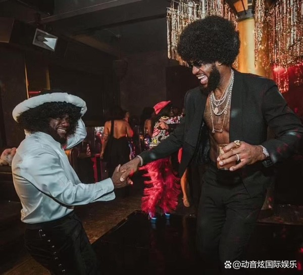 喜剧演员凯文·哈特在社交媒体上分享了一些派对的照片,这些照片充满了70年代的灵感。在其中一张照片中,他与勒布朗一起笑闹,勒布朗身穿一件彩色的丝绸长袖衬衫,搭配黑色裤子,尽显时尚风度。