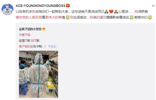 黄子韬粉丝正能量追星,疫情奔赴前线工作,爱豆感动转发:想哭