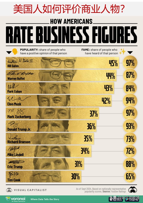 在美国商业人物中,知名度最高的是谁?最受欢迎的是谁?