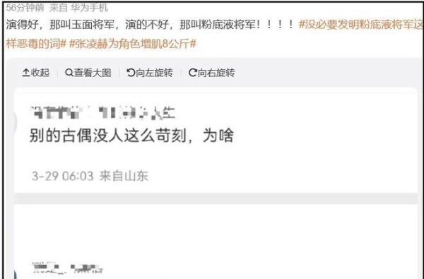 圈子里这种角色适配度低的情况也不是第一次出现,早在《逐玉》出来之前,周也、鞠婧祎、孟子义演的女将军,不也都被网友吐槽过造型气质不符合角色吗。不管男女,观众吐槽的核心从来不是妆发,是你明明配不上角色,还非要硬吹,搞一堆营销压下不同声音,这才是大家生气的点。