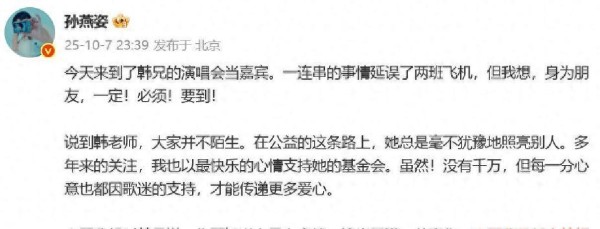 韩红演唱会爆料孙燕姿匿名捐款千万!孙燕姿发文回应了!娱乐圈真友谊原来长这样
