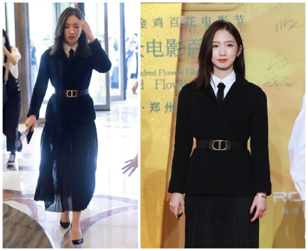 但杨采钰把这几件单品玩出了“负负得正”的效果,把这一身土味的单品穿出了精致感和贵气感。长了一张年代感十足的脸,杨采钰的身上有一种珠圆玉润的贵气感,她非常适合去消化一些复古的穿搭,也很适合dior 。