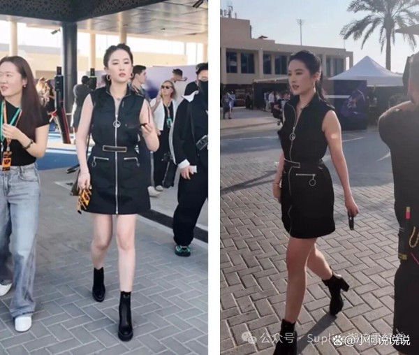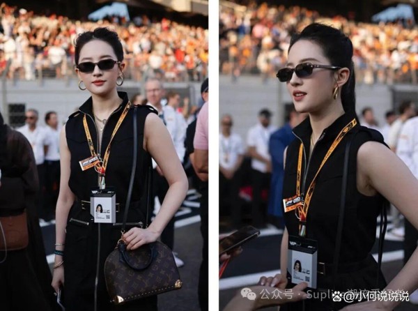 刘亦菲现身阿布扎比F1观赛,穿上无袖黑衣短裙展示好身材,这次真的瘦了一圈?
