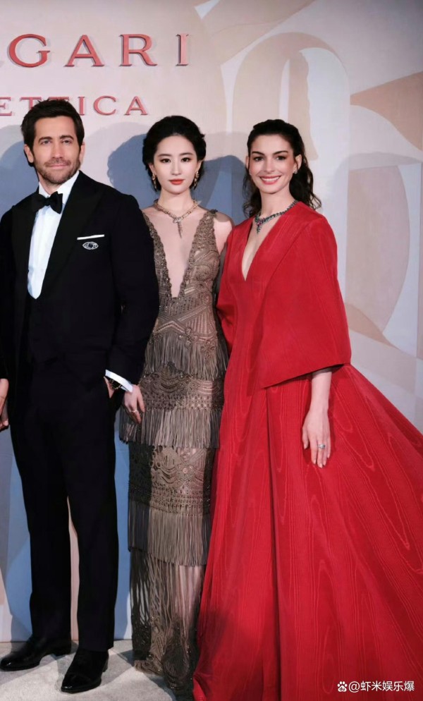 米兰宝格丽之夜合影:刘亦菲被挤,安妮海瑟薇靠边,C位让人意外39岁刘亦菲米兰深V流苏裙生图封神,搂腰给海瑟薇让C位被夸爆,不瘦成竹竿照样美翻国际红毯