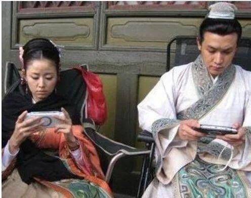 还有林心如和陆毅在拍戏的时候,认真的玩手机,这样的手势感觉他们两个在开黑,也许是在玩王者荣耀呢,两个人的表情都是如此的专注。