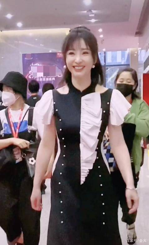 现场工作人员实在太多,柳岩还是露出了尴尬又不失礼貌的微笑,面对镜头露出一排牙,坚持走到最后。
