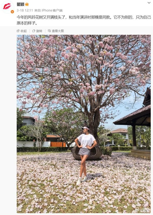 这档布景简单、时长仅三四十分钟的微综艺,成功盘活了瞿颖的国民度。“翻红”后,瞿颖在个人社交平台上发帖写道:“今年的风铃花树又开满枝头了……它不为别的,只为自己原本的样子。”