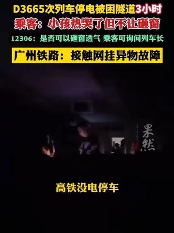 D3665次列车停电被困隧道3小时,乘客称小孩热哭了但不让砸窗,多人用手机灯光照明,广州铁路回应