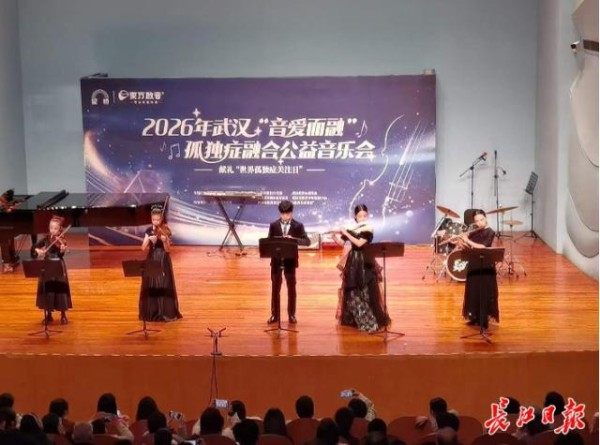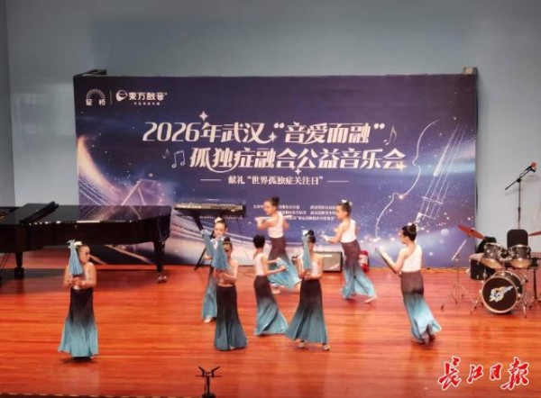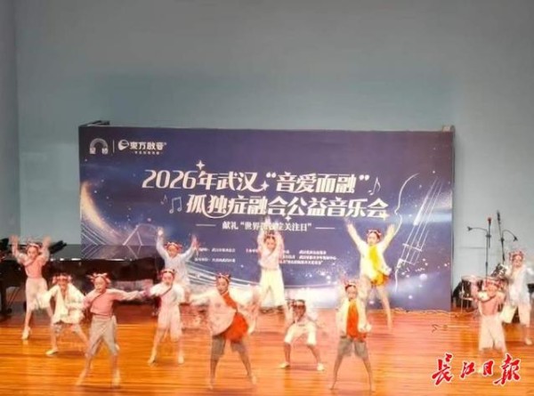 长江日报大武汉客户端3月28日讯 4月2日是第 19 个世界孤独症日。3 月 28 日下午,2026 武汉“音爱而融”孤独症融合公益音乐会在琴台音乐厅温情奏响,400多人的大厅座无虚席,身怀才艺的28 名孤独症儿童青少年与武汉爱莎国际学校、长江公益孔雀少儿艺术团—武汉小酒窝中国舞团等机构的小演员们一起同台献艺,用歌声与旋律打破孤独壁垒,展现别样生命光彩。