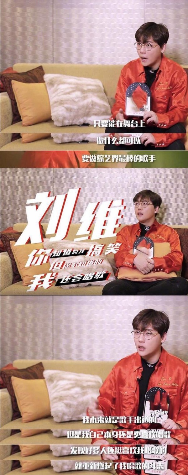在刘维的身上看到了和薛之谦一样对于音乐的热爱,很多在接受采访的时候,刘维都会说到自己的音乐,他说只要能够站在舞台上,什么都可以,要做综艺界最棒的歌手。他说别人都知道我的搞笑,但是也希望别人知道我会唱歌。平时压力大的时候也是靠唱歌来排解的,他一样希望能够呈现最好的自己,做出来的专辑能够让大家惊艳。不知道为什么,莫名的就有些感动了,有些艺人,也是身不由己,无奈额事情很多。