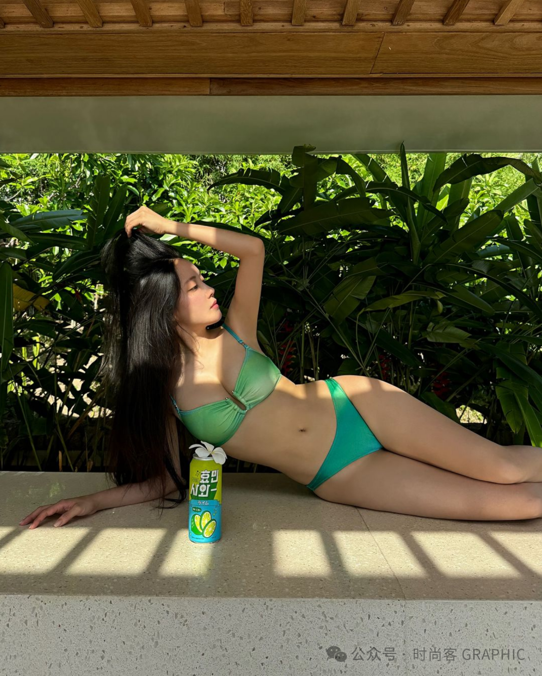 最近,Nana去巴厘岛度假,展示了她纤长的身材和完美的曲线,穿着绿叶印花比基尼。这款让人联想到巴厘岛海滩的茂密森林的绿色印花比基尼,来自品牌La Gia & Nani,售价为8.2万韩元。Nana只搭配了一顶棒球帽,呈现出简洁清新的度假造型。