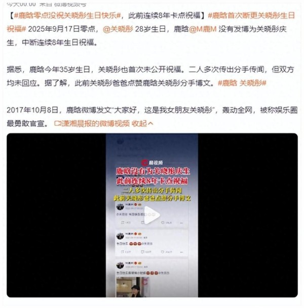 从年年卡点到沉默不语:鹿晗生日关晓彤零互动引分手疑云!