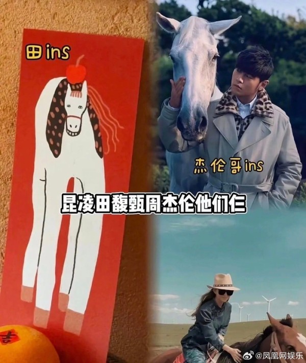 2026年2月17日:田馥甄在社交平台发布一张手绘作品,画中是一匹豹纹马配上半开的门。同一天周杰伦也发布动态,照片中的他穿着豹纹外套牵着一匹白马。