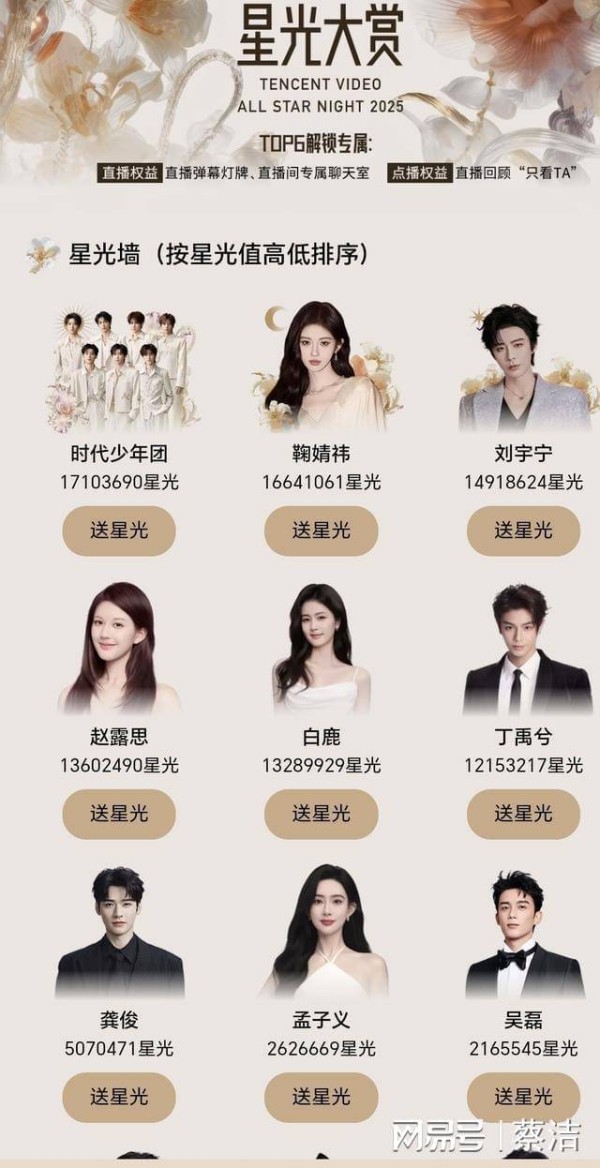 腾讯星光大赏值排名,鞠婧祎力压刘宇宁成为单人榜第一