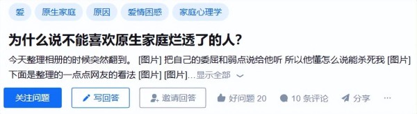 原生家庭,理应是孩子心灵的避风港,但却有些家庭,它的存在更像是一艘风雨飘摇的小船。那船不但不为孩子提供庇护,反而在风浪中不断地撞击、摧残,留下深深的伤痕。我们时常听到这样一种声音:“为什么不能和那些原生家庭破碎的人接近呢?”有一个网友在某平台上提出了这个问题,而她的回答,无不透露出深深的痛苦与无奈。