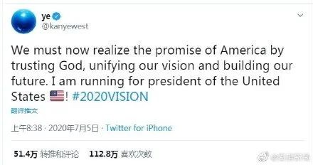 继嘻哈歌手“侃爷”之后,多位美国明星纷纷宣布竞选总统