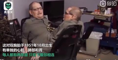 据《每日星报》7月5日报道,世界上最长寿连体双胞胎罗尼·盖勇和唐尼·盖勇于7月4日在医院去世,两人共同生活了68年。他们有单独的心脏、肺部和胃,每人都有两条腿,只有下腹部相连。