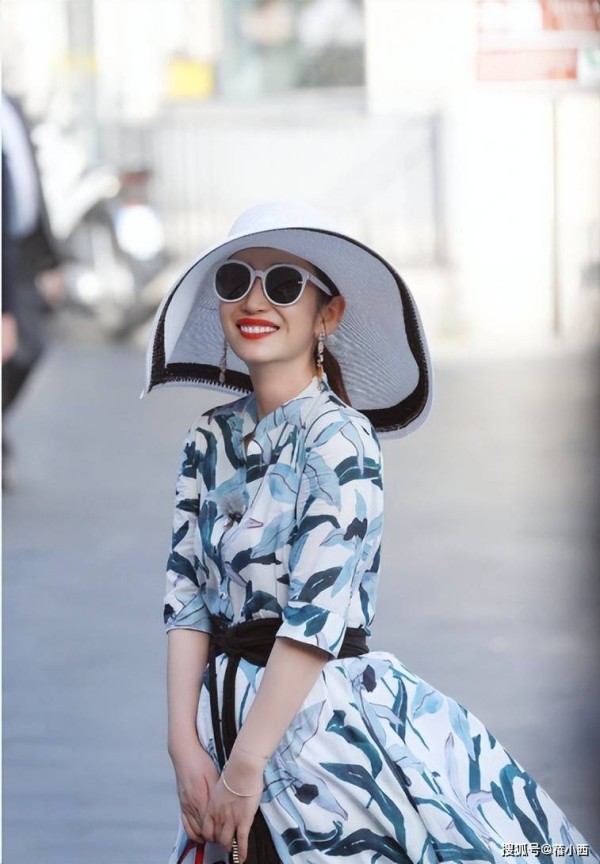 秦海璐的热带印花连衣裙造型,更是把街头度假的氛围感拉满,连衣裙的白底基底衬得蓝绿叶片印花清爽又大气,衬衫式V领与七分袖设计也很有巧思,可以修饰颈部线条,藏住手臂赘肉,对中年女性的身材格外友好。腰间搭配黑色宽腰封,可以修饰腰线,并且用强烈色彩对比打破印花的杂乱感。