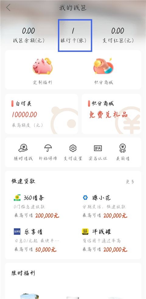 2、点击【银行卡】。