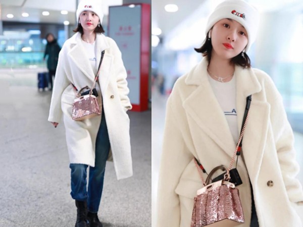 在冬季,穿大衣如何才能穿出时髦范?如果你正好入手了一件白色大衣,那么不妨借鉴下宋祖儿这一身搭配吧!看起来就觉得很温暖,简约又不失大气的大衣,挺括版型,完全不挑身材的,穿上很有范,更显瘦!她的内搭选择了一件白色t恤,下身是一条牛仔裤+黑色短靴,头上佩戴着一顶白色毛线帽,整个人显得很可爱,挎在身上的粉色亮片包包,轻松点亮了整个造型。