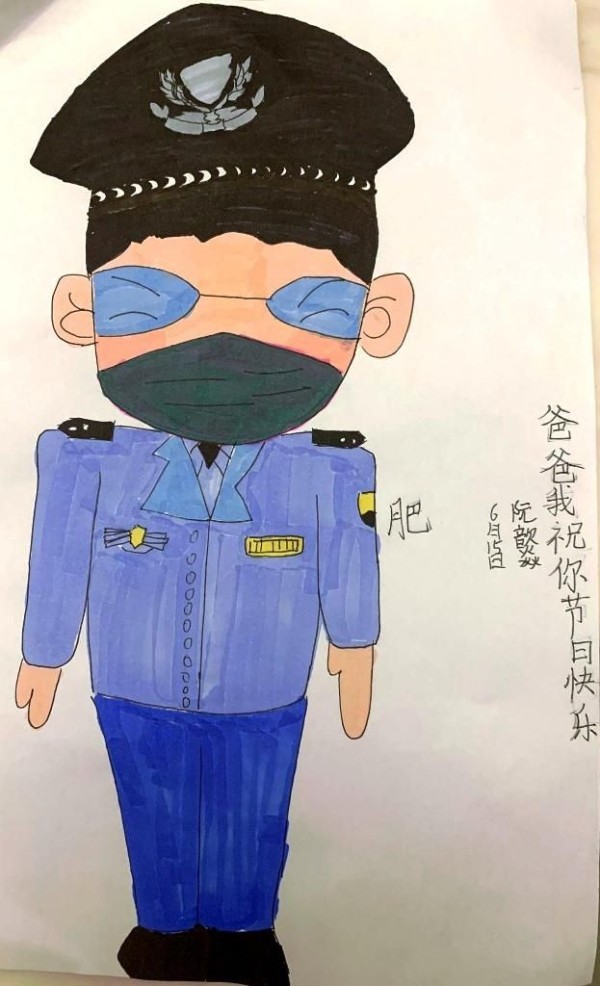 民警阮骏女儿阮歆焱:我的爸爸是一名移民管理警察。他工作的皇岗口岸需要24小时上班,经常是我才刚起床,爸爸就已经去上班了,晚上我要睡觉了,爸爸又要去上班了。疫情期间,爸爸比以前更辛苦了,经常需要去闭环执勤,每次都要14天见不到面。一天,爸爸给我发来一张穿防护服的照片,只见爸爸穿着“大白”在帮助通关的叔叔阿姨,头上戴着一个罩子,上面全是水蒸气,从手到脚都有东西罩着。我问:“爸爸,你累吗?”爸爸说“累是累,但这是爸爸的工作,也是爸爸的责任。”爸爸,我想对您说:“您是世界上最好的爸爸,我爱您!”