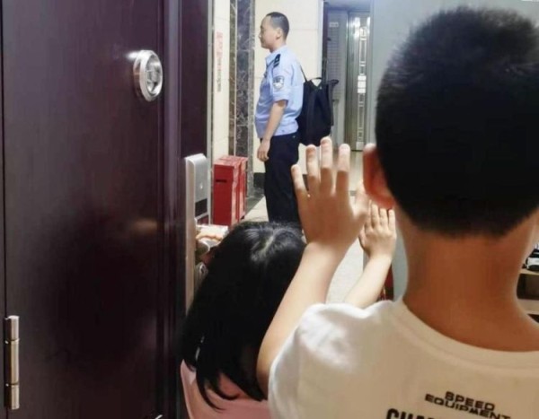 ▲皇岗边检站民警朱启东的儿女目送爸爸上夜班。