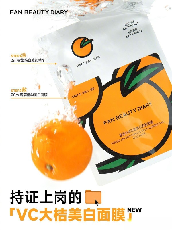 品牌选择了利润空间巨大的面膜赛道作为切入点,其核心策略是以高溢价定位中高端市场。以“VC大桔美白面膜”为例,售价高达198元/盒,单片均价39.6元,相较于珀莱雅等竞品的面膜价格更高。业内人士曾透露,一盒面膜的成本价格在10元左右,最便宜一片面膜成本可以做到一块多钱,而FanBeautyDiary最便宜一款面膜产品单盒售价138元,平均每片27.6元。这种定价策略为品牌带来了可观的毛利率。