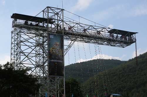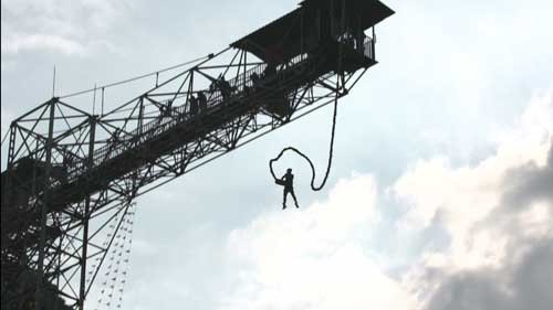 每次去理发,造型师说的最多的一句话就是:头摆正,不要动。做的最多的就是把头发分层夹好。可是这一次高空做造型,不仅面对58米高空令人紧张的高度,还要面对 6级大风使得跳台晃动的干扰,最重要的也是最关键的一项就是不能触碰到模特头上的警报,机会只有三次哦。而这一环节的惩罚机制更是惊险,别以为输了就输了,如果没有挑战成功,可是要即刻跳下去的!如此惊险刺激的环节都把我们的美女选手吓哭了,想看挑战者蹦极吗?比赛正式开始。