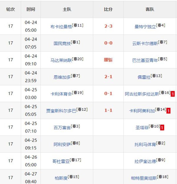 据《世界体育部》4月25日消息,在最新的哥伦比亚甲级春季联赛中,马达莱纳联与巴兰基亚青年的比赛中发生大规模骚乱,看台上的球迷爆发严重冲突,直接导致1人死亡和多人受伤,局势一度难以控制。