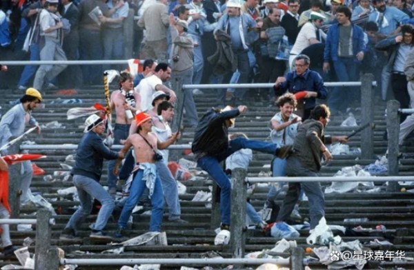 这是著名的“海瑟尔惨案”,欧冠决赛在比利时布鲁塞尔的海瑟尔球场进行,利物浦对决尤文图斯。利物浦球迷进场发现中立球迷区域全是尤文球迷,于是引发不满,双方球迷开始大规模骚乱,共造成39人死亡,60多人受伤。因为是欧冠决赛,因此“海瑟尔惨案”造成了极大的负面影响,欧足联随后对英国俱乐部禁赛5年,利物浦则被禁赛6年。