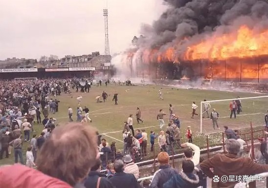 布拉特福德已经获得丙级联赛冠军,即将升入英乙。但一位吸烟者将未熄灭的烟头扔到了木质板的缝隙中,点燃了废报纸等易燃材料,最终引发了一场超级大火。随后年久失修的看台发生坍塌,而通道大门又处于锁闭状态,最终造成56人死亡,200多人受伤。