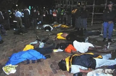 一场普通的南非甲级联赛,7万人的球场涌进了12万人。主队早早进球,这让入口变得更加拥挤,最终造成踩踏事件。而随后南非警方竟然使用催泪瓦斯,结果导致局面更加混乱,共有47人死亡,160人受伤。