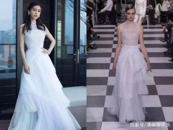 唐嫣这条裙子穿着是挺美的,但是把原来下半身的透明纱裙直接加了个内衬,这一下子就从高级定制变成了某宝山寨的感觉,不过据说她身上这条还真的是山寨的。