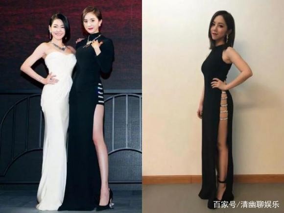 杨幂邓紫棋两人都穿过这款高开叉的黑色长裙,这条裙子的设计十分大胆,一路开叉到臀部,然后仅以镂空布条遮羞。杨幂看来还是比较保守的,里面还加了间白色的打底,只露出了大腿。而我们的皮裤棋果然是豪放,选择了真空上阵。这样一对比邓紫棋确实赢了,看来胆大的还是有好处的。