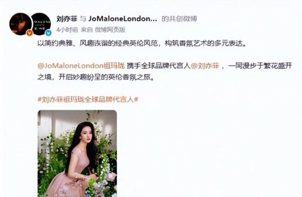 2026年1月27日,祖玛珑官宣刘亦菲成为品牌全球代言人。这位演员已经800天没有进入新剧组,但官宣当天,祖玛珑的经典款香水在电商平台迅速售罄,线下专柜排起长队。 这是祖玛珑创立50年来首次启用华人全球代言人。