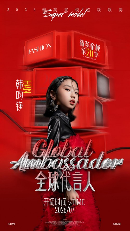 从赛场冠军到全球代言人,身份的升级是认可,更是沉甸甸的责任。2026 年,韩昀铮将以 2026 精英童模超级联赛全球代言人的全新身份,深度参与赛事全流程征程:她将作为赛事的核心形象标杆,用自己多年的赛场经历与成长心得,为全球参赛少年传递追梦力量,鼓励更多心怀时尚梦想的孩子以坚持为翼,勇敢追逐舞台光芒!
