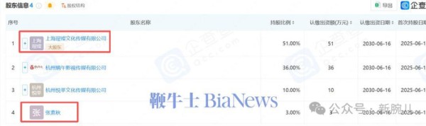 我们在企查查上查询了这家炳璨文化,顺着股权关系查询,发现幕后实际控制人另有其人。